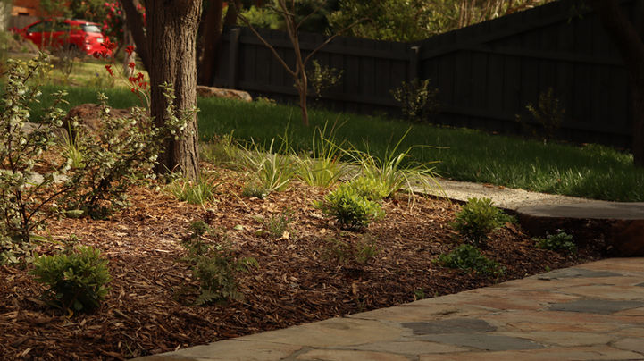 Despite tight rear access constraints, careful planning (including coordinated access via a neighbouring property) allowed the project to progress Native planting throughout the garden was designed, sourced and installed by the STEM Landscape Architecture & Design team, completing a functional, resilient and family-focused landscape.